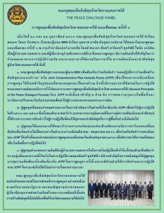 The Peace Dialogue Panel takes this opportunity to reaffirm its commitment to move the Peace Dialogue Process towards fruition as stipulated in the Royal Thai Government’s policy. In this regard, the PEDP renews its invitation to the public and all relevant sectors to join in efforts to create environment conducive to peace in the Southern Border Provinces of Thailand.