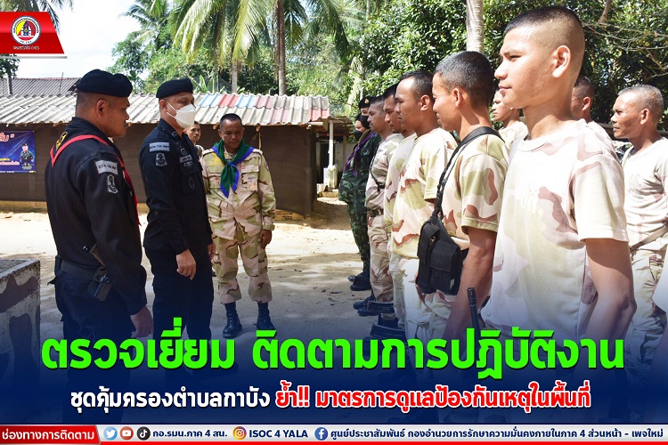 พันเอก สุรศักร ทั่วด้าว ผู้บังคับหน่วยเฉพาะกิจกรมทหารพรานที่ 47 ลงพื้นที่ไปยังฐานปฏิบัติการชุดคุ้มครองตำบลกาบัง (ชคต.กาบัง) อำเภอกาบัง จังหวัดยะลา เพื่อตรวจเยี่ยมพร้อมพบปะให้กำลังใจกำลังพลของชุดคุ้มครองตำบลกาบัง พร้อมติดตามเกี่ยวกับมาตรการต่าง ๆ ในการกำกับดูแลรักษาความปลอดภัยพื้นที่บริเวณโดยรอบของฐานปฏิบัติการตามนโยบาย สั่งการของผู้บังคับบัญชา “ตามหลักการปฏิบัติ 3 นอก 4 ใน” รวมทั้งได้เน้นย้ำเกี่ยวกับการปฏิบัติภารกิจของเจ้าหน้าที่ฯ จะต้องไม่ประมาทต่อสถานการณ์ ไม่สร้างเงื่อนไขต่าง ๆ และสามารถกำกับดูแลพื้นที่ได้อย่างมีประสิทธิภาพ