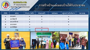 4. พื้นที่จังหวัดสงขลา ดำเนินตามโครงการ “ฉก.สงขลา ช่วยเหลือประชาชน” จำนวน 1 หลัง คือ บ้านเลขที่ 39/1 หมู่ที่ 10 ตำบลท่าม่วง อำเภอเทพา จังหวัดสงขลา ซึ่งมอบให้กับ นายประยูร เรืองยังมี ปัจจุบันอยู่ในระหว่างดำเนินการก่อสร้างแล้วเสร็จประมาณ 50%