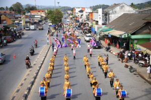 ซึ่งขบวนแห่ยาวเป็นกิโล มีจำนวน 24 ขบวน มีผู้เข้าร่วมกว่า 700 คน ได้มารวมตัวในย่านฝั่งตลาดเก่าเทศบาลนครยะลา เริ่มต้นด้วย ขบวนวงดุริยางค์ ขบวนแห่จากเทศบาล ชุมชน สถานศึกษา ขบวนช้าง 3 เชือก ขบวนม้า แสดงให้เห็นวิถีชีวิตความเป็นอยู่ของชาวมลายู โดยขบวนแห่นี้จะเคลื่อนขบวน ออกจากตลาดเก่า ผ่านถนนสิโรรส เลี้ยวซ้ายสามแยกศูนย์เยาวชน ผ่านวงเวียนหอนาฬิกา เพื่อประชาสัมพันธ์การจัดงาน และไปสิ้นสุดที่สนามโรงพิธีช้างเผือก ซึ่งเป็นสถานที่จัดงาน ก่อนที่จะมีพิธีเปิดในค่ำวันที่ 24 กุมภาพันธ์ 2566 ขณะที่ตลอดสองข้างฝั่งถนน มีประชาชนให้ความสนใจ ร่วมชมขบวนแห่กันจำนวนมาก ช่วยสร้างสีสันบรรยากาศให้เมืองยะลาคึกคักมีชีวิตชีวา