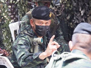 จากนั้น พลตรี เฉลิมพร ขำเขียว ผู้บัญชาการกองพลทหารราบที่ 15 ได้เดินทางไปยัง พื้นที่ฝึก สนามฝึก 300 ไร่ รับชมการปฏิบัติการวางฉากกำบัง และการทำการรบหน่วงเวลา พร้อมทั้งพบปะให้โอวาท รวมถึงมอบแนวทาง และนโยบายในการฝึกให้เป็นไปตามนโยบายที่กองทัพบกได้กำหนดไว้ ตลอดจนได้มอบสิ่งของ เพื่อเป็นขวัญ และกำลังใจให้กับกำลังพลที่เข้ารับการฝึก