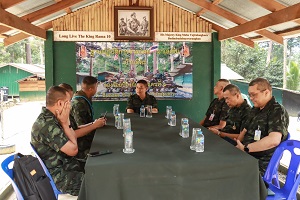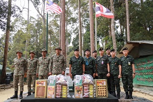 จากนั้นเวลา 12.00 น. รองแม่ทัพภาคที่ 4 / รองผู้อำนวยการรักษาความมั่นคงภายในภาค 4 ส่วนหน้า และคณะฯ เดินทางต่อไปยังฐานปฏิบัติการร่วมบ้านดีดะ ตำบลถ้ำทะลุ อำเภอบันนังสตา จังหวัดยะลา เพื่อเยี่ยมให้กำลังใจ พร้อมมอบสิ่งของอุปโภค-บริโภค แก่หน่วยทหารไทย-มาเลเซีย ซึ่งปฏิบัติภารกิจรักษาอธิปไตยแนวชายแดน สร้างขวัญกำลังใจ ตลอดจนแสดงความห่วงใยคุณภาพชีวิตกำลังพล ที่ได้ทุ่มเทแรงกายในการควบคุมพื้นที่ ดูแลรักษาความปลอดภัยตามแนวชายแดน เพื่อประโยชน์สุขของประชาชนและประเทศชาติ