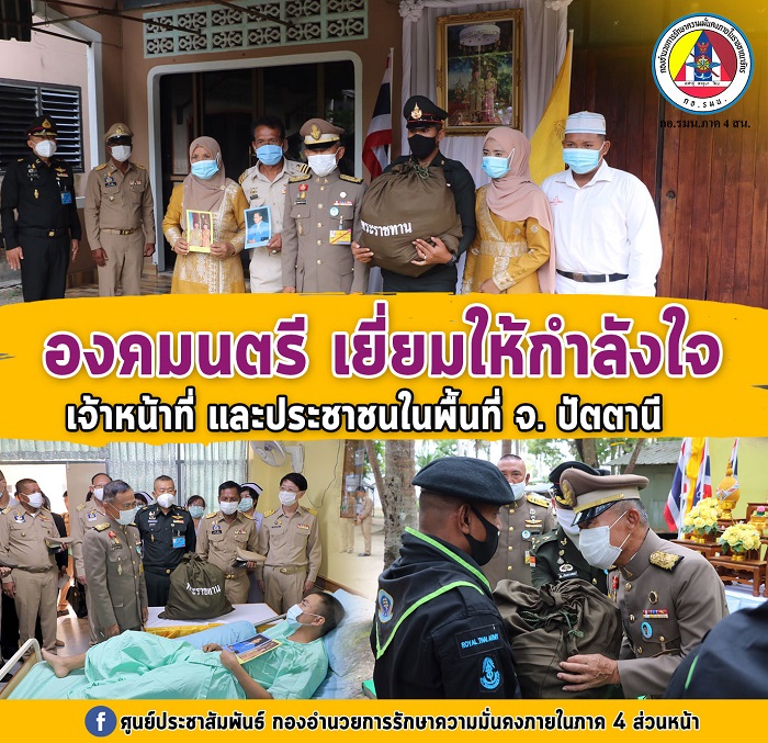 วันนี้ 8 กันยายน 2563 เวลา 09.00 น. ณ บ้านเลขที่ 6/1 หมู่ที่ 2 ตำบลบานา อำเภอเมือง จังหวัดปัตตานี พระบาทสมเด็จพระเจ้าอยู่หัว ทรงพระกรุณาโปรดเกล้าโปรดกระหม่อม ให้ พลเอก ไพบูลย์ คุ้มฉายา องคมนตรี เดินทางลงพื้นที่ปฏิบัติภารกิจเยี่ยม ให้กำลังใจเจ้าหน้าที่ และประชาชนที่ได้รับผลกระทบจากสถานการณ์ความไม่สงบในพื้นที่จังหวัดชายแดนภาคใต้ โดยได้เชิญสิ่งของพระราชทานมอบแก่ สิบตรี เอ็มซัยนูนดีน หะยีสะแม (บรรจุทดแทน) และครอบครัว อาสาสมัครทหารพราน เอ็มลุกมาน หะยีสะแม ที่ได้เสียชีวิตจากเหตุการณ์คนร้ายไม่ทราบจำนวน ลอบวางระเบิดชุดปฏิบัติการรักษาความปลอดภัยครู กองร้อยทหารพรานที่ 4305 หน่วยเฉพาะกิจกรมทหารพรานที่ 43 แรงระเบิดทำให้ได้รับบาดเจ็บสาหัส และเสียชีวิต ในเวลาต่อมา โดยมี พลโท สิทธิพร มุสิกะสิน รองผู้อำนวยการรักษาความมั่นคงภายในภาค 4 ส่วนหน้า, นายราชิต สุดพุ่ม ผู้ว่าราชการจังหวัดปัตตานี, พลตรี คมกฤช รัตนฉายา ผู้บังคับหน่วยเฉพาะกิจปัตตานี, คณะผู้บังคับบัญชา, หน่วยงานราชการในพื้นที่, เจ้าหน้าที่ทหาร, ตำรวจ, และประชาชน ร่วมให้การต้อนรับ