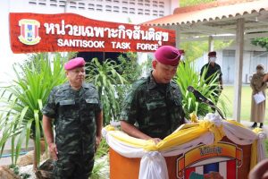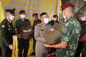 จากนั้นเดินทางต่อยังฐานปฏิบัติการชุดควบคุมที่ 543 หน่วยเฉพาะกิจสันติสุข ตำบลบ่อทอง อำเภอหนองจิก จังหวัดปัตตานี เชิญสิ่งของพระราชทานมอบแก่เจ้าหน้าที่จำนวน 45 ชุด เพื่อเป็นขวัญกำลังใจในการปฎิบัติหน้าที่ดูแล และรักษาความสงบสุขให้กับพี่น้องประชาชน