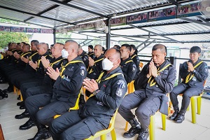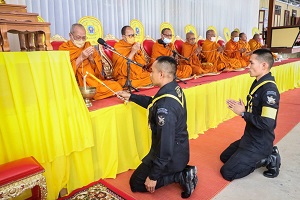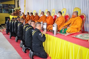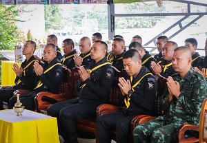 ทั้งนี้ ในพิธีทำบุญบำเพ็ญกุศล เริ่มต้นด้วยการไหว้สักการะสิ่งศักดิ์สิทธิ์ภายในหน่วย (ศาลเจ้าพ่อระแงะ) ต่อด้วยพิธีทางศาสนาอิสลาม ด้วยการละหมาดฮายัต จากนั้นเป็นพิธีสงฆ์ทางศาสนาพุทธ ประกอบด้วย พิธีเจริญพระพุทธมนต์ ถวายภัตตาหารเพล ตลอดจนเครื่องจตุปัจจัยไทยธรรมแด่พระภิกษุสงฆ์ และรับพรจากพระภิกษุสงฆ์ เพื่อเสริมความเป็นสิริมงคลความสงบร่มเย็น และความเจริญรุ่งเรืองให้แก่หน่วย หน่วยงานและเจ้าหน้าที่ ให้สามารถปฏิบัติงานไปด้วยความอยู่เย็นเป็นสุขและประสบความสำเร็จ