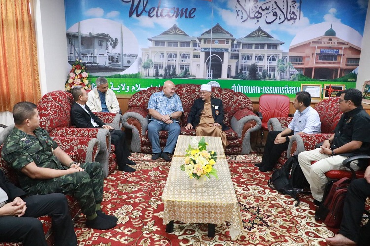 จากนั้น เวลา 12.20 น. พลเอก ตันศรี ซุลกิฟลี ไซนัล อะบิดิน และคณะฯ ได้เดินทางไปยังสำนักงานคณะกรรมการอิสลามประจำจังหวัดนราธิวาส อำเภอเมือง จังหวัดนราธิวาส โดยมี นายซาฟีอี เจ๊ะเลาะ ประธานคณะกรรมการอิสลามประจำจังหวัดนราธิวาส และคณะผู้บริหารสำนักงานคณะกรรมการอิสลามประจำจังหวัดนราธิวาส ให้การต้อนรับ และในโอกาสนี้ ได้พูดคุยหารือถึงสถานการณ์ในพื้นที่จังหวัดชายแดนภาคใต้ในห้วงที่ผ่านมา ซึ่งสถานการณ์ปัจจุบันมีเหตุการณ์ที่เกิดขึ้นลดน้อยลง อาจจะมีเกิดขึ้นบ้าง อย่างไรก็ตามสถานการณ์ในพื้นที่ที่เกิดขึ้นต้องอาศัยความร่วมมือจากทุกภาคส่วน ไม่ว่าจะเป็นเจ้าหน้าที่ ส่วนราชการ ผู้นำในพื้นที่ รวมถึงประชาชน ที่จะต้องร่วมกันดูแลพื้นที่ไม่ให้เหตุการณ์ความรุนแรงเกิดขึ้นอีก