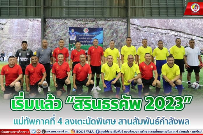 เมื่อวันที่ 1 มีนาคม 2566 ที่สนามฟุตซอลนาควานิช ค่ายสิรินธร ตำบลเขาตูม อำเภอยะรัง จังหวัดปัตตานี พลโท ศานติ ศกุนตนาค แม่ทัพภาคที่ 4 / ผู้อำนวยการรักษาความมั่นคงภายในภาค 4 เป็นประธานเปิดการแข่งขันฟุตบอลภายในค่ายสิรินธร ฟุตบอล 7 คน “สิรินธรคัพ 2023” พร้อมลงเตะนัดพิเศษร่วมกับกำลังพล ทีมสีแดง นำโดย พลโท ศานติ ศกุนตนาค แม่ทัพภาคที่ 4 / ผู้อำนวยการรักษาความมั่นคงภายในภาค 4 เฉือนชนะทีมสีเหลืองไป 3 – 2 เป็นการเปิดฤดูกาลแข่งขันอย่างสนุกสนาน โดยมี พลตรี ปราโมทย์ พรหมอินทร์ รองแม่ทัพภาคที่ 4 / รองผู้อำนวยการรักษาความมั่นคงภายในภาค 4 ส่วนหน้า ผู้บังคับบัญชา และกำลังพลกองอำนวยการรักษาความความมั่นคงภายในภาค 4 ส่วนหน้า ร่วมส่งเสียงเชียร์อย่างเต็มที่