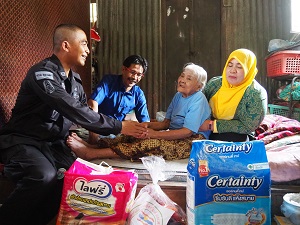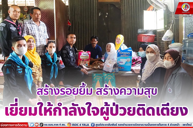 พันเอก อุทัย นิลเนตร ผู้บังคับหน่วยเฉพาะกิจกรมทหารพรานที่ 20 พร้อมด้วย นางแวซง หะยีดาโอ๊ะ รองประธานองค์กรภาคประชาชนเพื่อสันติและเศรษฐกิจพอเพียงจังหวัดปัตตานี (กลุ่มเสื้อเขียวจังหวัดปัตตานี) และกำลังพล ร่วมกับ ผู้นำท้องที่ ผู้นำท้องถิ่น และชุดปฏิบัติการกิจการพลเรือน ลงพื้นที่ ตำบลประจัน และตำบลยะรัง อำเภอยะรัง จังหวัดปัตตานี เพื่อตรวจเยี่ยมให้กำลังใจ พร้อมมอบเครื่องอุปโภคบริโภคที่จำเป็นให้กับคนพิการและผู้ป่วยติดเตียง เพื่อสร้างขวัญกำลังใจให้กับผู้ป่วยและครอบครัว รวมถึงสอบถามสภาพชีวิตความเป็นอยู่ และให้การช่วยเหลือด้านการแพทย์ในเบื้องต้น
