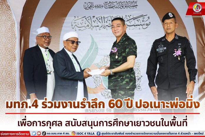 วันที่ (5 มีนาคม 2566) เวลา 09.00 น. ที่ โรงเรียนวัฒนธรรมอิสลาม ตำบลพ่อมิ่ง อำเภอปะนาเระ จังหวัดปัตตานี พลโท ศานติ ศกุนตนาค แม่ทัพภาคที่ 4/ผู้อำนวยการรักษาความมั่นคงภายในภาค 4 ร่วมเป็นเกียรติในพิธีเปิดงานรำลึก 60 ปี ปอเนาะพ่อมิ่ง เพื่อการกุศล และร่วมสนับสนุนงบประมาณสร้างอาคารเรียนและหอพักนักเรียนโรงเรียนวัฒนธรรมอิสลาม โดยมี นายแวดือราแม มะมิงจิ ประธานคณะกรรมการอิสลามประจำจังหวัดปัตตานี เป็นประธานเปิดกิจกรรมฯ ซึ่งมี นายซาฟีอี เจ๊ะเลาะ ประธานคณะกรรมการอิสลามประจำจังหวัดนราธิวาส ,นายอิบรอฮีม หะ ผู้รับโบอนุญาตโรงเรียนวัฒนธรรมอิสลาม ,นายเศรษฐ์ อัลยุฟรี นายกองค์การบริหารส่วนจังหวัดปัตตานี, พันเอก ธายุทธ สวนกูล ผู้บังคับหน่วยเฉพาะกิจกรมทหารพรานที่ 42,หัวหน้าส่วนราชการ,ผู้นำศาสนา,ผู้บริหารโรงเรียน,คณะอุสตาซ,ศิษย์เก่า,นักเรียนและประชาชนให้การต้อนรับและร่วมงานฯ