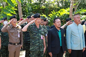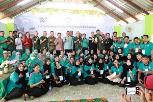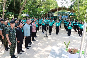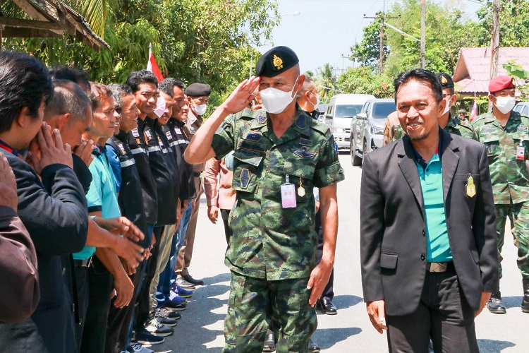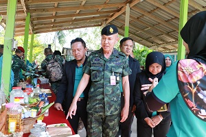 จากนั้น รองผู้อำนวยการรักษาความมั่นคงภายในภาค 4 ส่วนหน้า และคณะ ร่วมพบปะมวลชน องค์กรภาคประชาชนเพื่อสันติและเศรษฐกิจพอเพียงในพื้นที่จังหวัดชายแดนภาคใต้ (กลุ่มเสื้อเขียว) เพื่อพบปะพูดคุย ติดตามผลการดำเนินของศูนย์เรียนรู้ฯ ในห้วงที่ผ่านมา พร้อมมอบแนวทางการปฏิบัติให้กับสมาชิกกลุ่มเสื้อเขียว พร้อมกันนี้ ยังได้เยี่ยมชมกิจกรรมภายในศูนย์เรียนรู้, ปลูกต้นไม้ ให้อาหารปลาและมอบถุงยังชีพ ให้กับผู้ยากไร้ จำนวน 20 ชุด