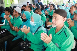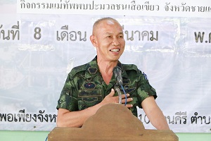 ในโอกาสนี้ รองผู้อำนวยการรักษาความมั่นคงภายในภาค 4 ส่วนหน้า กล่าวว่า ก่อนอื่นต้องขอชื่นชมกลุ่มเสื้อเขียวฯ ที่ขับเคลื่อนงานในชุมชน หนุนเสริมการทำงานของภาครัฐ สร้างคุณภาพชีวิต ในมิติความมั่นคงทางอาหาร มิติความสงบสุขในสังคม ตลอดระยะเวลาที่ผ่านมากลุ่มเสื้อเขียว เป็น กลุ่มที่ให้ความรักความสามัคคีบนพื้นฐานของความหลากหลาย นับเป็นความภาคภูมิใจของหน่วยงานภาครัฐ ที่ได้เห็นความเข้มแข็งของกลุ่ม แม้จะมีอุปสรรคอยู่บ้าง แต่ยังดำเนินไปได้ด้วยความร่วมมือจากทุกภาคส่วน กองอำนวยการรักษาความมั่นคงภายในภาค 4 ส่วนหน้า ก็ได้สนับสนุนกิจกรรมของกลุ่มเสื้อเขียว มาอย่างต่อเนื่อง ขอชื่นชมให้สมาชิกกลุ่มเสื้อเขียวได้ทำงานด้วยความรักและความเข้มแข็ง และขอเป็นกำลังใจให้สมาชิกกลุ่มเสื้อเขียวร่วมมือกันขับเคลื่อนในทุกกิจกรรม เพื่อพัฒนากลุ่มและศูนย์ฯ ให้มีความมั่นคงและยั่งยืนตลอดไป โดยหน่วยงานภาครัฐจะคอยติดตามและให้การสนับสนุนอย่างต่อเนื่อง นอกจากนี้ฝากทุกคนช่วยกันสอดส่องดูแลชุมชนให้มีความปลอดภัย ทั้งด้านความมั่นคงและภัยแทรกซ้อนในเรื่องยาเสพติด เพื่อให้พื้นที่จังหวัดชายแดนภาคใต้กลับมาสงบสุขอีกครั้ง