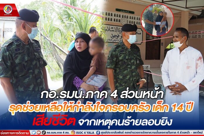 ซึ่งในวันนี้ (11 มีนาคม 2566) เวลา 09.00 น. พันเอก โชติ ยิกุสังข์ รองผู้บังคับหน่วยเฉพาะกิจปัตตานี ได้เดินทางเข้าเยี่ยมปลอบขวัญให้กำลังใจแก่ครอบครัว เด็กหญิง กูตักวา ฯ ณ บ้านเลขที่ 62/6 หมู่ที่ 2 ตำบลปุยุด อำเภอเมือง จังหวัดปัตตานี พร้อมมอบเงินช่วยเหลือในขั้นต้น โดยนาง ต่วน ปาริด๊ะ มารดาของเด็กหญิง กูตักวา ฯ กล่าวว่า ตนรู้สึกตกใจและเสียใจมากกับเหตุการณ์ที่เกิดขึ้นและไม่คิดว่าเหตุการณ์ดังกล่าวจะเกิดขึ้นกับครอบครัวของตน โดยขณะเกิดเหตุตนและบุตรสาวกำลังนั่งคุยกันหน้ามัสยิดระหว่างรอสามีเข้าไปทำธุระภายในมัสยิด จู่ๆ คนร้ายขับรถผ่านมาพร้อมยิงปืนเข้าใส่ กระสุนถูกบุตรสาวของตนจนล้มฟุบลงกับโต๊ะ เมื่อหายตกใจจึงตะโกนขอความช่วยเหลือจากผู้ที่อยู่ในบริเวณนั้นนำส่งโรงพยาบาลแต่ก็ไม่สามารถยื้อชีวิตบุตรสาวของตนไว้ได้ โดยนางต่วน ปาริด๊ะ กล่าวว่า รักลูกสาวคนนี้มาก โดยเด็กหญิง กูตักวาฯ เป็นเด็กดี เชื่อฟังพ่อแม่ ชอบช่วยเหลือสังคม รักพี่น้องและครอบครัว โดยเหตุการณ์ความรุนแรงที่เกิดขึ้นตนไม่อยากให้เกิดกับผู้ใดหรือครอบครัวของใครอีก