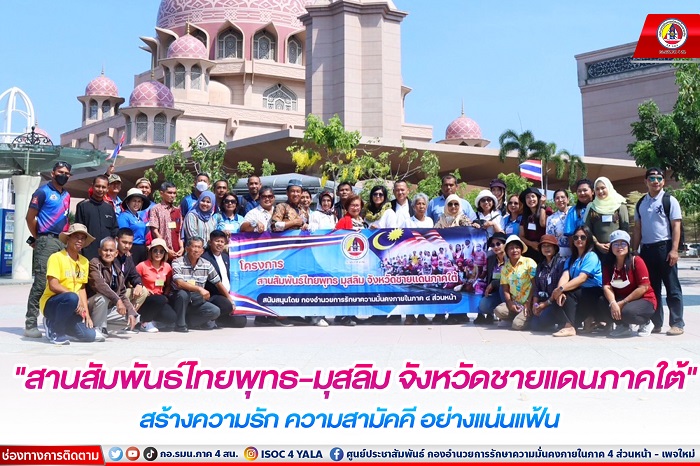 วันที่ 16 มีนาคม 2566 เวลา 14.00 น. (ตามเวลาประเทศไทย) ที่ห้องประชุม ชั้น 1 โรงแรมเดอคิง กรุงกัวลาลัมเปอร์ รัฐสลังงอ ประเทศมาเลเซีย สำนักมวลชนและกิจการพิเศษ กองอำนวยการรักษาความมั่นคงภายในภาค 4 ส่วนหน้า พร้อมด้วย หน่วยเฉพาะกิจสันติสุข นำเครือข่ายชาวพุทธเพื่อสันติภาพ จังหวัดชายแดนภาคใต้ และเครือข่ายมวลชนที่นับถือศาสนาอิสลาม จำนวน 50 คน ที่เดินทางศึกษา เรียนรู้วิถีวัฒนธรรมของประเทศมาเลเซีย ร่วมกิจกรรมสานรัก สานสัมพันธ์ พุทธ มุสลิม 2 แผ่นดิน ภายใต้โครงการ “สานสัมพันธ์ไทยพุทธ – มุสลิม จังหวัดชายแดนภาคใต้” มีการเรียนรู้ถึงประวัติศาสตร์มลายู จากวิดีโอคลิปของ ดร.ปรีดี มะนีวัน นักวิชาการคนสำคัญในพื้นที่จังหวัดชายแดนภาคใต้ ที่เสียชีวิตเมื่อวันที่ 15 มกราคม ที่ผ่านมา ก่อนร่วมกันแลกเปลี่ยนความคิดเห็นในการเดินทางครั้งนี้ หลังจากได้เรียนรู้วัฒนธรรมประเทศมาเลเซียร่วมกันมาเป็นเวลา 4 วัน ซึ่งจะเดินทางกลับยังประเทศไทยในวันรุ่งขึ้น (17 มีนาคม 2566) นอกจากนี้ ยังมีกิจกรรมสันทนาการต่าง ๆ เพื่อเสริมสร้างความรัก ความสามัคคีในหมู่คณะอีกด้วย