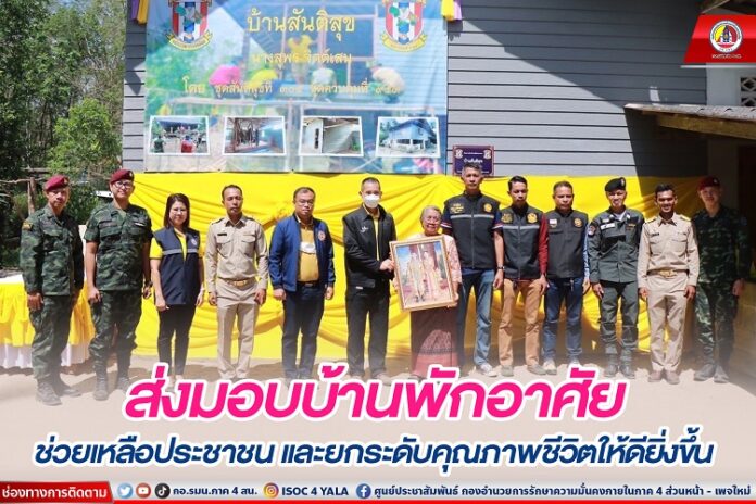 เมื่อวันที่ 18 มีนาคม 2566 เวลา 10.00 น. ชุดควบคุมที่ 953 หน่วยเฉพาะกิจสันติสุข ร่วมกับ ชุดสันติสุขที่ 305 , ชุดทักษิณสัมพันธ์ที่ 301 หัวหน้าส่วนราชการ และประชาชนในพื้นที่ ดำเนินส่งมอบบ้านพักอาศัยในโครงการช่วยเหลือประชาชนที่ได้รับความเดือดร้อนด้านที่พักอาศัย เพื่อส่งมอบให้แก่ นางสุพร จิตต์เสน โดยมี พันเอก วิทยา กาญจนพัฒน์ เสนาธิการ หน่วยเฉพาะกิจสันติสุข เป็นประธานในพิธี พร้อมมอบถุงยังชีพให้แก่คนชราในพื้นที่ ณ บ้านเลขที่ 13 บ้านป่าพ้อ หมู่ที่ 3 ตำบลลำใหม่ อำเภอเมือง จังหวัดยะลา โดยมีผู้เข้าร่วมกิจกรรมประมาณ 100 คน