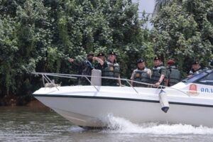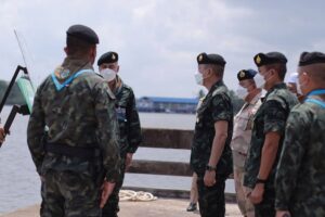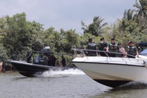 วันนี้ 19 มีนาคม 2566 เวลา 10.00 น. พลโท ศานติ ศกุนตนาค แม่ทัพภาคที่ 4 /ผู้บัญชาการศูนย์ปฏิบัติการกองทัพภาคที่ 4 ลงพื้นที่ ตากใบ จังหวัดนราธิวาส ประชุมแถลงแผนสกัดกั้นการลักลอบขนย้ายสิ่งผิดกฎหมายตามแนวชายแดน 4661 ร่วมกับหัวหน้าส่วนราชการ หน่วยงานที่เกี่ยวข้อง ทหาร ตำรวจ ฝ่ายปกครอง ก่อนลาดตระเวนสำรวจเส้นทางแนวชายแดนทางน้ำ พร้อมเยี่ยมให้กำลังใจเจ้าหน้าที่ ชุดป้องกันชายแดน และชุดปฏิบัติการพิทักษ์พื้นที่ รักษาความมั่นคงปลอดภัยตามแนวชายแดน ทั้งทางน้ำและทางบก เน้นย้ำนโยบายการปฏิบัติงาน ตามพันธกิจ 3 ประการในการป้องกันชายแดน ไม่ว่าจะเป็นการเฝ้าตรวจและป้องกันชายแดน การจัดระเบียบและการสร้างความมั่นคงในพื้นที่ชายแดน และการประสานความสัมพันธ์กับประเทศเพื่อนบ้าน ขณะเดียวกันเพื่อเป็นการอำนวยความสะดวกและรักษาความปลอดภัยแก่พี่น้องประชาชนในเทศกาลเดือนรอมฎอน และสงกรานต์ที่จะถึงนี้