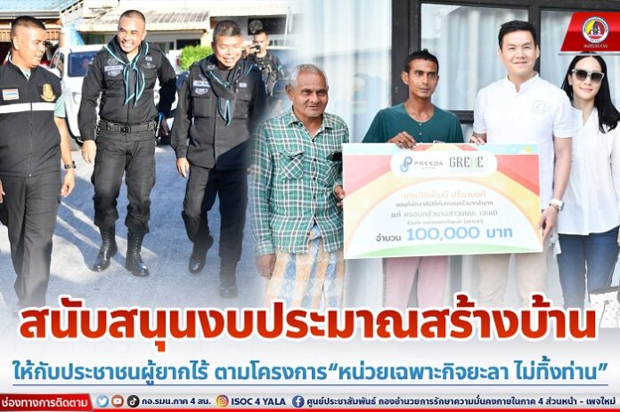สำหรับโครงการ “หน่วยเฉพาะกิจยะลา ไม่ทิ้งท่าน” เป็นโครงการที่ช่วยเหลือประชาชนด้านที่พักอาศัย ซึ่งมีวัตถุประสงค์เพื่อให้ครอบครัวผู้ยากไร้มีคุณภาพชีวิตที่ดีขึ้น รวมทั้งเป็นการบรรเทาความเดือดร้อนให้กับประชาชนในเบื้องต้น