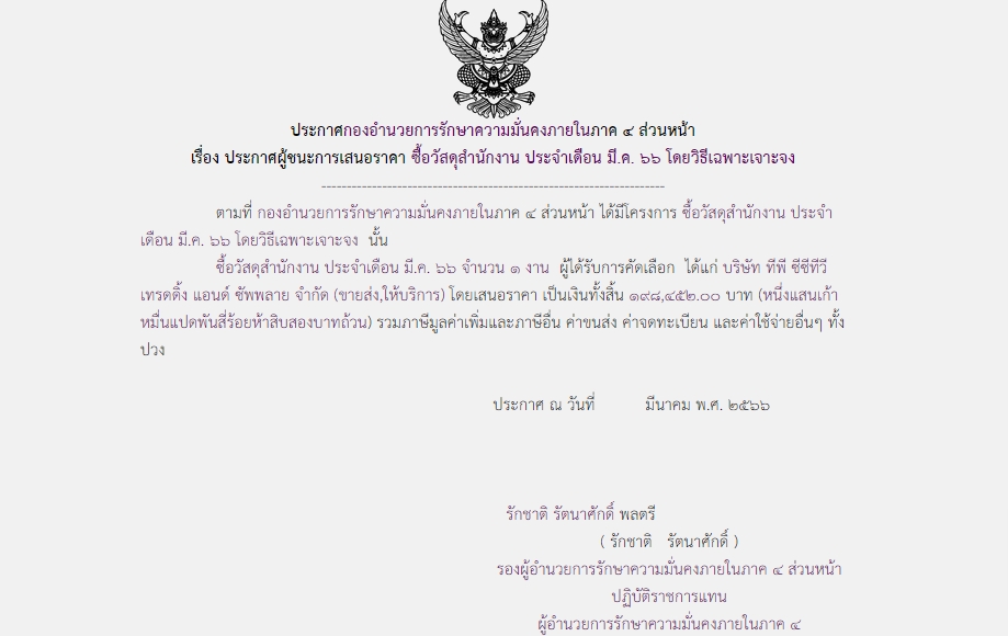 จัดซื้อ จัดจ้างประกาศผู้ชนะการเสนอราคา ประกาศผู้ชนะการเสนอราคา ซื้อวัสดุสำนักงาน ประจำเดือน มี.ค. ๖๖ โดยวิธีเฉพาะเจาะจง March 20, 2023 410 Share Facebook Twitter Google+ Telegram LINE