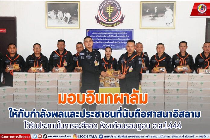 เมื่อวันที่ 19 มีนาคม 2566 เวลา 16.00 น. ที่กองบังคับการหน่วยเฉพาะกิจกรมทหารพรานที่ 46 (วัดสวนธรรม) หมู่ที่ 2 ตำบลรือเสาะออก อำเภอรือเสาะ จังหวัดนราธิวาส พันโท ปัตตพล ประพันธ์ รองผู้บังคับหน่วยเฉพาะกิจกรมทหารพรานที่ 46 มอบอินทผาลัม ให้แก่ผู้บังคับกองร้อยฯ และกำลังพลชุดปฏิบัติการกิจการพลเรือน เพื่อนำไปมอบต่อให้กับกำลังพลที่นับถือศาสนาอิสลาม และประชาชนในพื้นที่ เพื่อแสดงความยินดี เนื่องในโอกาสเข้าสู่เดือนรอมฎอนอันประเสริฐ ประจำปีฮิจเราะห์ศักราช 1444 (พ.ศ.2566 ) ไว้สำหรับใช้ ในการละศีลอด (เปิดบวช) พร้อมทั้งแสดงออกถึงความยินดีกับพี่น้องชาวไทยมุสลิม ที่ได้ร่วมกันปฏิบัติศาสนกิจตามหลักศาสนาอิสลามอย่างเคร่งครัด ในห้วงเดือนรอมฎอน เดือนอันประเสริฐ เดือนแห่งการทำความดีทั้งปวง