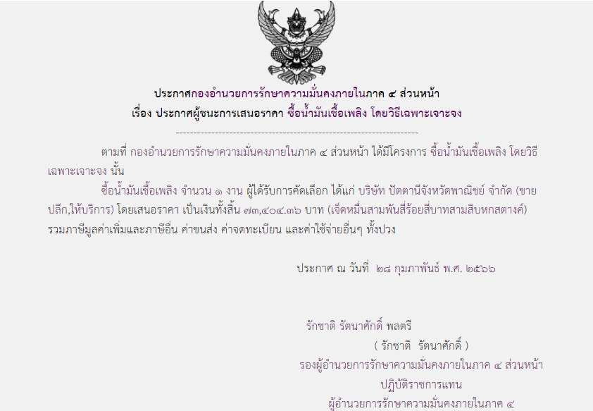 จัดซื้อ จัดจ้างประกาศผู้ชนะการเสนอราคา ประกาศผู้ชนะการเสนอราคา ซื้อน้ำมันเชื้อเพลิง โดยวิธีเฉพาะเจาะจง March 20, 2023 415 Share Facebook Twitter Google+ Telegram LINE