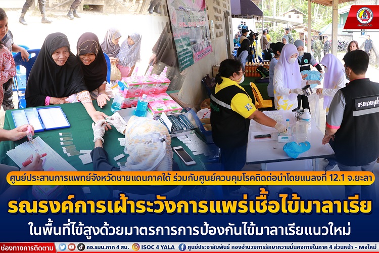วันนี้ (21 มีนาคม 2566) เวลา 08.30 น. ที่มัสยิดดารุลฮูดา ตำบลปะแต อำเภอยะหา จังหวัดยะลา พลตรี โชคชัย ขวัญพิชิต ผู้อำนวยการโรงพยาบาลค่ายวชิราวุธ / แพทย์ใหญ่กองทัพภาคที่ 4 ลงพื้นที่ร่วมกิจกรรมรณรงค์การเฝ้าระวังการแพร่เชื้อไข้มาลาเรียในพื้นที่ไข้สูง (มาตรการการป้องกันไข้มาลาเรียแนวใหม่จังหวัดยะลา) ซึ่งเป็นความร่วมมือระหว่างศูนย์ควบคุมโรคติดต่อนำโดยแมลงที่ 12.1 จังหวัดยะลา และศูนย์ประสานการแพทย์จังหวัดชายแดนภาคใต้ โดยมี กำลังพลจากหน่วยเฉพาะกิจกรมทหารพรานที่ 47 , สาธารณสุขอำเภอยะหา , สมาชิกอาสารักษาดินแดนในพื้นที่ ผู้นำชุมชน ตลอดจนประชาชนในพื้นที่ เข้าร่วม