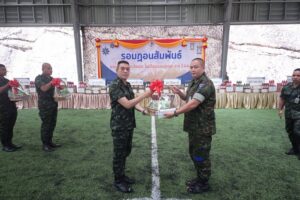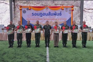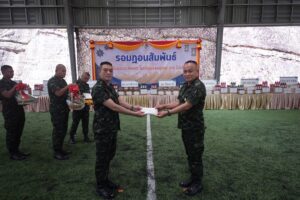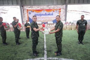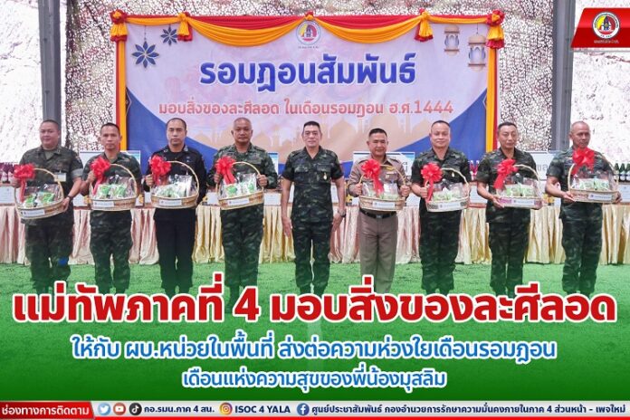 วันนี้ (21 มีนาคม 2566) เวลา 13.30 น. ณ สนามฟุตซอลนาควานิช ค่ายสิรินธร ตำบลเขาตูม อำเภอยะรัง จังหวัดปัตตานี พลโท ศานติ ศกุนตนาค แม่ทัพภาคที่ 4 / ผู้อำนวยการรักษาความมั่นคงภายในภาค 4 เป็นประธานในพิธีมอบสิ่งของละศีลอด เดือนรอมฎอน เพื่อนำไปแจกจ่ายให้กับพี่น้องไทยมุสลิมในพื้นที่จังหวัดชายแดนภาคใต้ สำหรับรับประทานในห้วงการถือศีลอด ประจำปี ฮิจเราะห์ศักราช 1444 โดยให้กับหน่วยในพื้นที่เป็นผู้ดำเนินการแจกจ่ายต่อไป ประกอบด้วย หน่วยเฉพาะกิจยะลา โดย พลตรี ธนัช ฉิมพาลี ผู้บังคับหน่วยเฉพาะกิจยะลา, หน่วยเฉพาะกิจปัตตานี โดย พลตรี ขจรศักดิ์ อินทร์ทอง ผู้บังคับหน่วยเฉพาะกิจปัตตานี , หน่วยเฉพาะกิจนราธิวาส พลตรี เฉลิมพร ขำเขียว ผู้บังคับหน่วยเฉพาะกิจนราธิวาส, หน่วยเฉพาะกิจสงขลา พันเอก ยุทธนาม เพชรม่วง รองผู้บังคับหน่วยเฉพาะกิจสงขลา , หน่วยเฉพาะกิจนาวิกโยธินกองทัพเรือ นาวาโท ศุภกิจ วงสุวรรณ์ หัวหน้าฝ่ายกิจการพลเรือนหน่วยเฉพาะกิจนาวิกโยธินกองทัพเรือ , กองกำลังทหารพรานจังหวัดชายแดนภาคใต้ พันเอก ธีรนัย ฉายสุวรรณ เสนาธิการกองกำลังทหารพรานจังหวัดชายแดนภาคใต้ , กองกำลังตำรวจจังหวัดชายแดนภาคใต้ โดย พลตำรวจตรี ดุษฎี ชูสังกิจ รองผู้บัญชาการกองกำลังตำรวจจังหวัดชายแดนภาคใต้ และจากหน่วยเฉพาะกิจสันติสุข พันเอก สุภาพ คุขุนทด รองเสนาธิการหน่วยเฉพาะกิจสันติสุข เข้ารับมอบ
