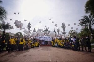 วันนี้ (21 มีนาคม 2566) เวลา 14.30 น. บรรยากาศที่มัสยิดกลางจังหวัดปัตตานี กลุ่มพลังมวลชนผู้นำศาสนา ผู้นำท้องที่ ผู้นำท้องถิ่น ส่วนราชการ ตลอดจนประชาชน เยาวชนในพื้นที่จังหวัดชายแดนภาคใต้ กว่า 300 คน ร่วมปล่อยลูกโป่งสีขาว พร้อมแสดงป้ายปฏิเสธความรุนแรงขึ้นสู่ท้องฟ้า โดยมี พลโท ศานติ ศกุนตนาค แม่ทัพภาคที่ 4 / ผู้อำนวยการรักษาความมั่นคงภายในภาค 4 เป็นประธานร่วมปล่อยลูกโป่งและเปิดกิจกรรม “เส้นทางสู่รอมฏอนสันติสุข” ต้อนรับเดือนรอมฎอนอันประเสริฐ ประจำปีฮิจเราะห์ศักราช 1444 พร้อมกันนี้แม่ทัพภาคที่ 4 มอบสิ่งของอุปโภค บริโภคที่จำเป็น อาทิ อินทผาลัม เครื่องดื่มน้ำหวานใช้ในการละศีลอดให้ผู้เข้าร่วมกิจกรรม และนำไปแจกจ่ายให้กับประชาชน นับเป็นจุดเริ่มต้นที่สำคัญ ของการก้าวสู่รอมฎอนสันติสุข