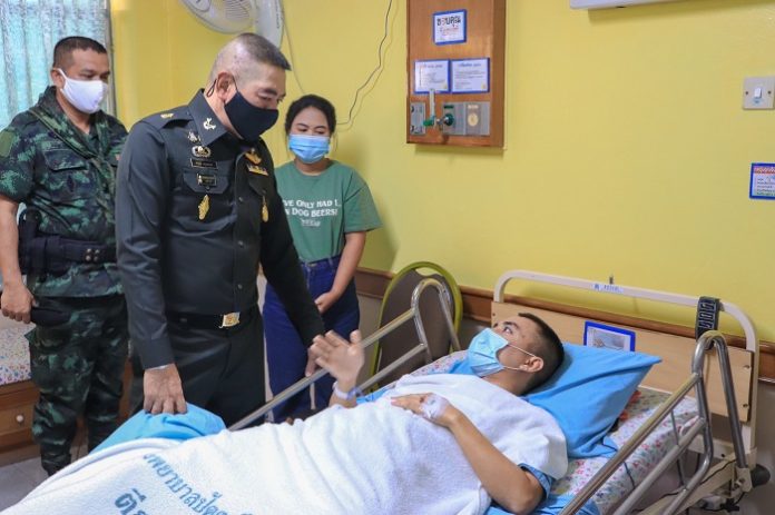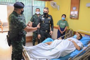ทั้งนี้ พลตรี ศานติ ศกุนตนาค ได้พูดคุยสอบถาม อาการ ตลอดจนให้กำลังใจ สิบตรีเอกราช และครอบครัว อาการโดยรวม ขณะนี้ปลอดภัย และมีขวัญกำลังใจที่ดี