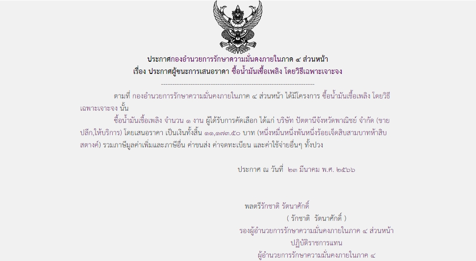 จัดซื้อ จัดจ้างประกาศผู้ชนะการเสนอราคา ประกาศผู้ชนะการเสนอราคา ซื้อน้ำมันเชื้อเพลิง โดยวิธีเฉพาะเจาะจง March 23, 2023 389 Share Facebook Twitter Google+ Telegram LINE