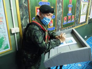 เมื่อเวลา 11.00 น. วันที่ 10 ต.ค. 63 พลตรี ไพศาล หนูสังข์ ผู้บังคับหน่วยเฉพาะกิจนราธิวาส ได้ลงพื้นที่ตรวจเยี่ยมและเน้นย้ำกำลังพล 3 กองร้อย ณ ฐานปฏิบัติการกองร้อยป้องกันชายแดนที่ 1 ถึง 3 ณ พื้นที่ อ.ตากใบ อ.แว้งและสุไหงโก-ลก เพื่อเน้นย้ำเจ้าหน้าที่กองกำลังที่ถูกส่งตัวมาปฏิบัติภารกิจ ตามช่องทางธรรมชาติ ที่มีระยะทางยาวกว่า 90 กิโลเมตร มีความเข้มงวดกวดขันบุคคลที่จะลักลอบข้ามแดนจากพื้นที่รัฐกลันตัน ประเทศมาเลเซีย หลังจากที่ประเทศมาเลเซียมีการแพร่ระบาดอย่างหนักของเชื้อไวรัสโคโรนา หรือ โควิด-19 ในระลอกที่ 2 ที่มีสถิติพบผู้ติดเชื้อในแต่ละวันทั่วประเทศกว่า 300 คน และได้เสียชีวิตไปแล้ว 152 คน โดยในที่ประชุม พลตรี ไพศาล หนูสังข์ ผู้บังคับหน่วยเฉพาะกิจนราธิวาส ได้กล่าวสรุปต่อผู้บังคับกองร้อยป้องกันชายแดนทั้ง 3 ชุด จัดกำลังพลคุมพื้นที่ช่องทางธรรมชาติตลอด 24 ชั่วโมง โดยเฉพาะในช่องเวลากลางคืนซึ่งในช่วงที่ผ่านมา สามารถจับกุมบุคคลต่างด้าวและชาวมาเลเซีย รวมถึงชาวบ้านไทยบางส่วน มีการแอบว่าจ้างเรือยนต์ข้ามฟากนั่งโดยสารเล็ดรอดข้ามมาฝั่งไทย ซึ่งเสี่ยงต่อการนำเชื้อไวรัสโคโรนา หรือ โควิด-19 มาแพร่ระบาดในพื้นที่ ซึ่งยากต่อการควบคุมโรคและอาจจะส่งผลทำให้ในพื้นที่มีการแพร่ระบาดของเชื้อไวรัสโคโรนา หรือ โควิด-19 ในระลอกที่ 2