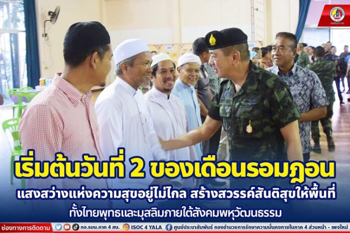 โดยก่อนละศีลอดแม่ทัพภาคที่ 4 ได้พบปะ พูดคุยกับผู้เข้าร่วมกิจกรรม รวมทั้งร่วมกันขอพรจากพระผู้เป็นเจ้า (ขอดุอาร์) ให้ความสันติสุขเกิดขึ้นในพื้นที่จังหวัดชายแดนภาคใต้ บรรยากาศเป็นไปด้วยความอบอุ่น ก่อนร่วมรณรงค์ให้ รอมฎอนปีนี้เป็นปีแห่งความสุขสดใสที่พี่น้องทุกคนจะได้สวมใส่เครื่องแต่งกายที่เป็นเอกลักษณ์วัฒนธรรม และจัดกิจกรรมอย่างสร้างสรรค์ งดการจุดดอกไม้ไฟ พลุ ประทัด ที่จะทำให้เกิดความสับสน และก่อให้เกิดอันตราย โดยกิจกรรมในครั้งนี้ยังคงแสดงออกถึงสังคมพหุวัฒนธรรมอันหลากหลายภายใต้พื้นที่ของอำเภอสุไหงปาดี อีกด้วย