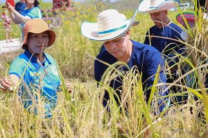หลังเสร็จสิ้นพิธีเปิด แม่ทัพภาคที่ 4 ร่วมกับชาวบ้านทั้งไทยพุทธ และชาวไทยมุสลิม ร่วมกันเก็บเกี่ยวข้าวในผืนนารักษ์แห่งนี้ อย่างสนุกสนาน ท่ามกลางร้อยยิ้มแห่งความสุข ก่อนจะเดินทางไปเยี่ยมชมนิทรรศการด้านการเกษตรของชาวบ้าน นักเรียนนักศึกษา และหน่วยงานในพื้นที่อำเภอนาทวี จังหวัดสงขลา กว่า 10 บูท และพบปะพูดคุยกับชาวบ้าน นอกจากนี้ภายในงานยังมีการแสดงดนตรีจากศิลปินชาวใต้ และการแสดงจากน้องๆนักเรียนอีกหลายชุดที่มาสร้างสีสันให้กับงานในวันนี้