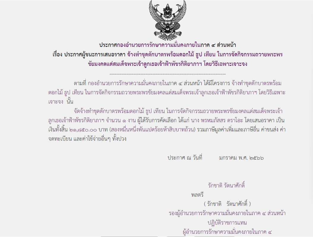จัดซื้อ จัดจ้างประกาศผู้ชนะการเสนอราคา ประกาศผู้ชนะการเสนอราคา จ้างทำชุดตักบาตรพร้อมดอกไม้ ธูป เทียน ในกิจกรรมถวายพระพรชัยมงคลแด่สมเด็จพระเจ้าลูกเธอเจ้าฟ้าพัชรกิติยาภาฯ โดยวิธีเฉพาะเจาะจง March 26, 2023 479 Share Facebook Twitter Google+ Telegram LINE