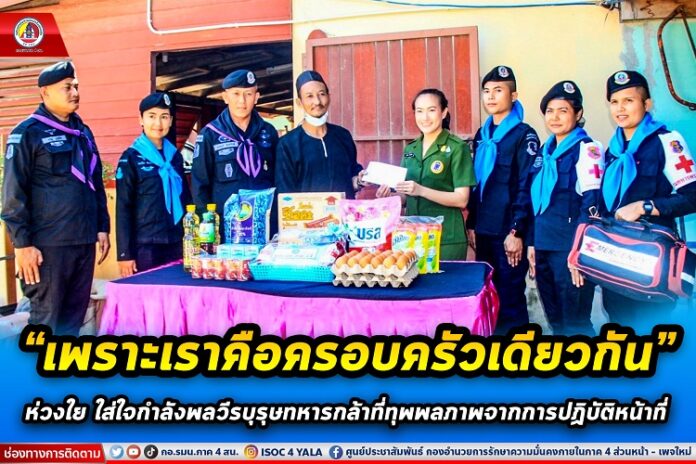 เมื่อวันที่ 26 มีนาคม 2566 เวลา 14.30 น. พันเอก ภาคภูมิ จันทรักษ์ ผู้บังคับหน่วยเฉพาะกิจกรมทหารพรานที่ 44 พร้อมด้วย คุณจุฑาพร จันทรักษ์ ประธานสมาคมแม่บ้านทหารบกสาขากรมทหารพรานที่ 44 เดินทางไปพบปะพูดคุยให้กำลังใจกับครอบครัว และวีรบุรุษอดีตทหารกล้า เพื่อรักษาอธิปไตยของประเทศไทยไว้ในครั้งอดีตกาล จำนวน 2 ราย คือ อาสาสมัครทหารพราน นิรันทร์ แม ทุพพลภาพทางด้านร่างกายบริเวณขาจากสถานการณ์ในพื้นที่จังหวัดชายแดนภาคใต้ และ สิบโท บุลยามีน เจ๊ะสนิ ทุพพลภาพทางด้านร่างกายบริเวณขา จากสถานการณ์ในพื้นที่จังหวัดชายแดนภาคใต้ ณ บ้านพักอาศัยของอาสาสมัครทหารพราน นิรันทร์ แม ซึ่งตั้งอยู่ในพื้นที่ถนนสามัคคี ตำบลสะบารัง อำเภอเมือง จังหวัดปัตตานี และบ้านพักอาศัยของ สิบโท บุลยามีน เจ๊ะสนิ ซึ่งตั้งอยู่ในพื้นที่ ตำบลโคกโพธิ์ อำเภอโคกโพธิ์ จังหวัดปัตตานี