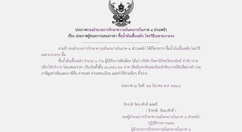 จัดซื้อ จัดจ้างประกาศผู้ชนะการเสนอราคา ประกาศผู้ชนะการเสนอราคา ซื้อน้ำมันเชื้อเพลิง โดยวิธีเฉพาะเจาะจง March 27, 2023 352 Share Facebook Twitter Google+ Telegram LINE