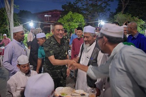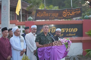 ทั้งนี้ ภายในกิจกรรม แม่ทัพภาคที่ 4 ได้ร่วมพบปะพูดคุย ให้กำลังใจกับ ผู้นำศาสนา ผู้นำพื้นที่ ตลอดจนพี่น้องประชาชน ทั้งได้ขอความร่วมมือ “งด ซื้อ ขาย และจุดประทัดในห้วงเทศกาลที่สำคัญ เพื่อไม่ให้เป็นการสร้างความสับสน และก่อให้เกิดอันตรายกับเยาวชนในพื้นที่ พร้อมกันนี้ได้ถือโอกาสมอบอินทผลัม และสิ่งของเครื่องอุปโภคบริโภค ให้แก่ผู้นำศาสนา เพื่อนำไปใช้ประกอบศาสนกิจ และมื้ออาหารในการละศีลอดในแต่ละวัน รวมทั้งได้ร่วมกันขอพรจากพระผู้เป็นเจ้า (ดุอาร์) ให้เกิดความสันติสุขเกิดขึ้นภายในพื้นที่จังหวัดชายแดนภาคใต้