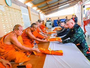เมื่อวันที่ 2 เมษายน 2566 เวลา 12.30 น. พันเอก ก่อเกียรติ เข็มแดง รองผู้บังคับหน่วยเฉพาะกิจนราธิวาส พร้อมด้วย พันเอก ภาณุวัฒน์ สุคชเดช ผู้บังคับหน่วยเฉพาะกิจกรมทหารพรานที่ 49 และ พันตำรวจเอก ภัควัฒน์ วันสนุก ผู้กำกับสถานีตำรวจภูธรศรีสาคร ร่วมเป็นเจ้าภาพทอดผ้าป่าสามัคคี เพื่อรวบรวมจตุปัจจัย นำไปบูรณะปฏิสังขรณ์ศาสนสถานภายในวัด ณ ที่พักสงฆ์บ้านสายบน หมู่ที่ 3 ตำบลกาหลง อำเภอศรีสาคร จังหวัดนราธิวาส โดยมี หัวหน้าส่วนราชการ กำลังพลของหน่วยเฉพาะกิจกรมทหารพรานที่ 49 และพุทธศาสนิกชนในพื้นที่เข้าร่วมในกิจกรรมเป็นจำนวนมาก