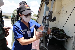 สำหรับการซักซ้อมแผนเผชิญเหตุ“การลำเลียงผู้ป่วยทางอากาศยาน” ด้วยเฮลิคอปเตอร์เป็นการจำลองเหตุการณ์ ตั้งแต่ได้รับแจ้งเหตุ การติดต่อประสานงาน การให้ความช่วยเหลือเมื่อได้รับการประสานจาก โรงพยาบาลในพื้นที่ และสถาบันการแพทย์ฉุกเฉินแห่งชาติ ผ่านแพทย์ใหญ่กองทัพภาคที่ 4/ ผู้อำนวยการศูนย์ประสานการแพทย์จังหวัดชายแดนภาคใต้ ขอรับการสนับสนุนการลำเลียงผู้ป่วยด้วยเฮลิคอปเตอร์ กรณีเฮลิคอปเตอร์พยาบาล ( ฮ.ท.145 ) ติดภารกิจ จะพิจารณาใช้เฮลิคอปเตอร์ของกองกำลังทางอากาศเฉพาะกิจที่ 9 โดยใช้ Bell412EP ที่เว้นว่างจากภารกิจทางทหาร ซึ่งมีลักษณะเหมือนกับ เฮลิคอปเตอร์ใช้งานทั่วไป แบบ 212 ( Bell212 ) ของกองทัพบก เข้าปฏิบัติภารกิจลำเลียงผู้ป่วยในทันที