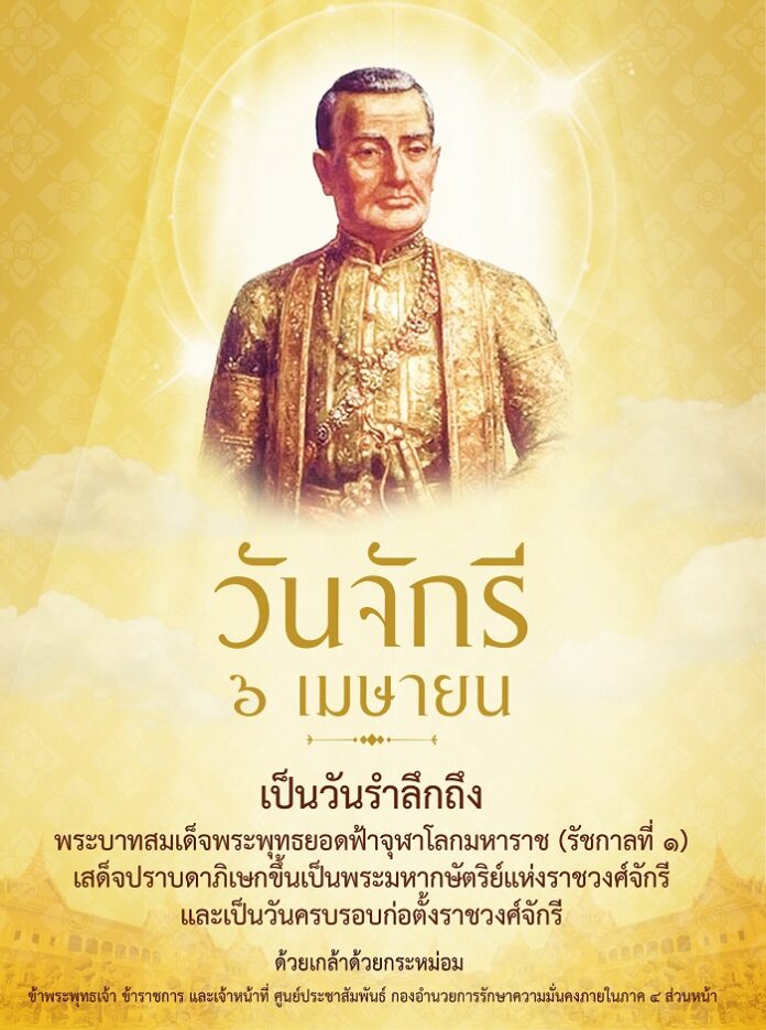 วันจักรี (Chakri Memorial Day) คือ วันที่ระลึกแห่งการขึ้นเถลิงถวัลยราชสมบัติเป็นปฐมบรมกษัตริย์แห่งพระบรมราชจักรีวงศ์ของพระบาทสมเด็จพระพุทธยอดฟ้าจุฬาโลกมหาราช วันจักรีตรงกับวันที่ 6 เมษายนของทุกปี อันเนื่องมาจากเมื่อวันที่ 6 เมษายน พ.ศ. 2325 พระบาทสมเด็จพระพุทธยอดฟ้าจุฬาโลกมหาราช หรือพระรามาธิบดีที่ 1 ทรงเสด็จปราบดาภิเษกขี้นเป็นพระมหากษัตริย์แห่งราชวงศ์จักรีและเป็นวันครบรอบการก่อตั้งราชวงศ์จักรี ในวันนี้จึงถือเป็นวันสำคัญอีกวันหนึ่งที่พวกเราชาวไทยควรให้ความระลึกถึง กว่าจะมาเป็นสยามได้ในทุกวันนี้