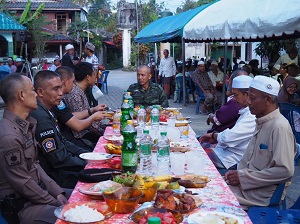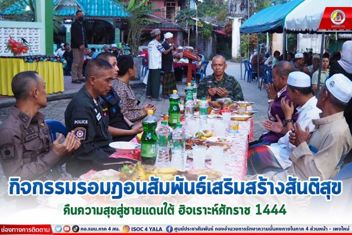 เมื่อวันที่ 7 เมษายน 2566 เวลา 17.45 น. ที่ มัสยิดบ้านบูกิตปาลัส ตำบลยี่งอ อำเภอยี่งอ จังหวัดนราธิวาส พลตรี เฉลิมพร ขำเขียว ผู้บัญชาการกองพลทหารราบที่ 15 / ผู้บังคับหน่วยเฉพาะกิจนราธิวาส เป็นผู้แทน พลโท ศานติ ศกุนตนาค แม่ทัพภาคที่ 4/ผู้อำนวยการรักษาความมั่นคงภายในภาค 4 เดินทางลงพื้นที่ร่วมกิจกรรม “รอมฎอนสัมพันธ์” ละศีลอด (เปิดปอซอ) ในเดือนรอมฎอน ฮิจเราะห์ศักราช 1444 กับผู้นำศาสนา ผู้นำท้องที่ ผู้นำท้องถิ่น และพี่น้องประชาชนไทยมุสลิมในพื้นที่ อำเภอยี่งอ จังหวัดนราธิวาส เพื่อต้อนรับเดือนรอมฏอนอันประเสริฐ สร้างบรรยากาศที่ดีในห้วงของการปฏิบัติศาสนกิจ ตลอดจนสร้างสภาวะแวดล้อมให้เอื้อต่อการพูดคุยเพื่อสันติสุขจังหวัดชายแดนภาคใต้ พร้อมทั้งเพื่อสนับสนุน และส่งเสริมการปฏิบัติศาสนกิจของพี่น้องชาวไทยมุสลิมในห้วงเดือนรอมฎอน เสริมสร้างความสัมพันธ์อันดีระหว่างหน่วยงานรัฐกับผู้นำหมู่บ้าน, ผู้นำชุมชนและผู้นำศาสนาในพื้นที่ โดยก่อนละศีลอด ผู้บังคับหน่วยเฉพาะกิจนราธิวาส และหัวหน้าส่วนราชการได้พบปะ พูดคุยกับผู้เข้าร่วมกิจกรรม รวมทั้งร่วมกันขอพรจากพระผู้เป็นเจ้า (ขอดุอาร์) ให้ความสันติสุขเกิดขึ้นในพื้นที่จังหวัดชายแดนภาคใต้ ซึ่งบรรยากาศเป็นไปด้วยความอบอุ่น