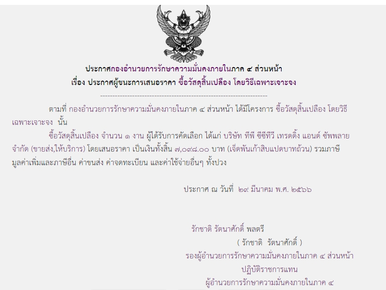 จัดซื้อ จัดจ้างประกาศผู้ชนะการเสนอราคา ประกาศผู้ชนะการเสนอราคา ซื้อวัสดุสิ้นเปลือง โดยวิธีเฉพาะเจาะจง April 8, 2023 484 Share Facebook Twitter Google+ Telegram LINE