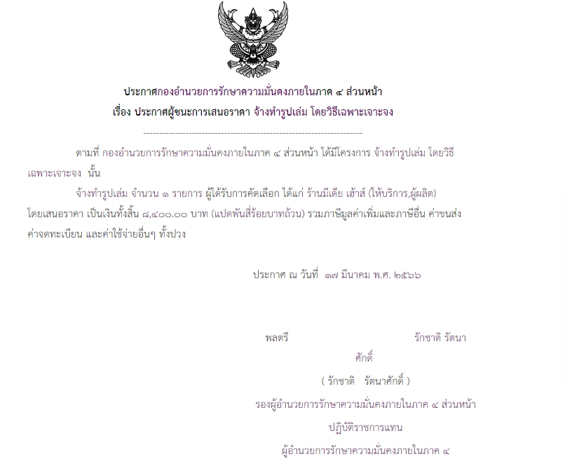 จัดซื้อ จัดจ้างประกาศผู้ชนะการเสนอราคา ประกาศผู้ชนะการเสนอราคา จ้างทำรูปเล่ม โดยวิธีเฉพาะเจาะจง April 9, 2023 365 Share Facebook Twitter Google+ Telegram LINE