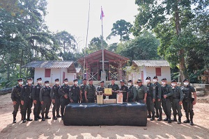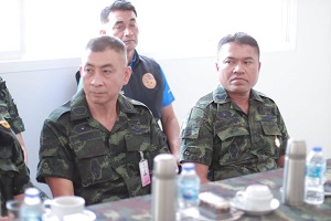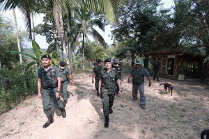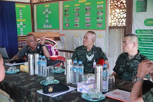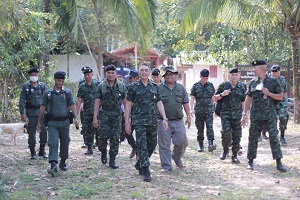 ต่อมาแม่ทัพภาคที่ 4 และคณะ ได้เดินทางต่อไปยังฐานปฏิบัติการ ชุดเฝ้าตรวจชายแดนที่ 4101 ช่องขมิ้ว อำเภอท่าแซะ จังหวัดชุมพร และฐานปฏิบัติการ ชุดเฝ้าตรวจชายแดนที่ 4102 บ้านสันตินิมิต ตำบลรับร่อ อำเภอท่าแซะ จังหวัดชุมพร ซึ่ง 2 ชุดเข้าตรวจ ดังกล่าว เป็นพื้นที่ที่มีความห่างไกล และทุรกันดาร เนื่องจากเป็นสภาพป่าดิบชื้นมีภูเขาล้อมรอบฝนตกตลอดทั้งปีการเดินทางเข้าออกจึงมีความยากลำบาก โดยเฉพาะฐานปฏิบัติการ ชุดเฝ้าตรวจชายแดนที่ 4101 ช่องขมิ้วนั้น การลำเลียงอาหารสิ่งอุปโภคบริโภคแทบจะเป็นไปได้ยากจึงมีการลำเลียงอาหารทางอากาศซึ่งจะมีเพียงแค่ 15 วันต่อครั้งเท่านั้น กำลังพลเจ้าหน้าที่ดังกล่าวที่ปฏิบัติงานจึงต้องอาศัยความมานะอดทน และความเสียสละอย่างแท้จริง ซึ่งตลอดระยะเวลาที่ผ่านมา กำลังพลเจ้าหน้าที่ทุกฝ่าย ทหาร ตำรวจ และกำลังประจำถิ่นภาคประชาชน ได้บูรณาการร่วมกันตามพันธกิจ 3 ประการ คือการลาดตระเวรเฝ้าตรวจการรุกล้ำอธิปไตย ป้องกันและปราบปรามการกระทำผิดกฎหมายที่ส่งผลต่อความมั่นคงของประเทศ ตลอดจนการสร้างความสัมพันธ์อันดีกับประเทศเพื่อนบ้านด้วยดีเสมอมา