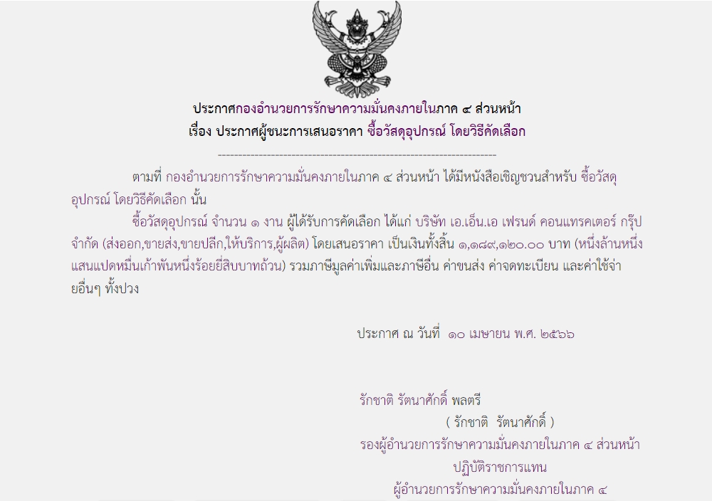 จัดซื้อ จัดจ้างประกาศผู้ชนะการเสนอราคา ประกาศผู้ชนะการเสนอราคา ซื้อวัสดุอุปกรณ์ โดยวิธีคัดเลือก April 10, 2023 380 Share Facebook Twitter Google+ Telegram LINE