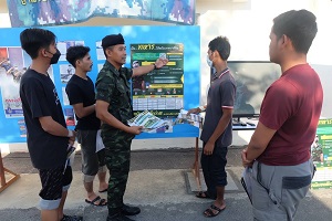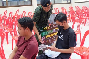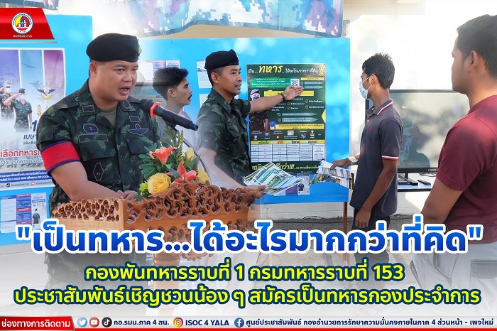 ที่ หอประชุมที่ว่าการอำเภอเมืองปัตตานี จังหวัดปัตตานี พันโท พันทวี สุวอ ผู้บังคับกองพันทหารราบที่ 1 กรมทหารราบที่ 153 พร้อมด้วย รองหัวหน้าชุดปฏิบัติการกิจการพลเรือน กองพันประจำอำเภอ เข้าพบปะและประชาสัมพันธ์เชิญชวนน้อง ๆ ทหารกองเกินที่มาคัดเลือกเป็นทหารกองประจำการ ประจำปี 2566 สมัครใจเป็นทหารกองประจำการ เพื่อเป็นน้องคนเล็กของกองทัพบก” และสิทธิ สวัสดิการ และข้อดีต่าง ๆ ตลอดระยะเวลาที่รับราชการเป็นทหารกองประจำการ รวมถึงการต่อยอดเป็นนักเรียนนายสิบ เพื่อให้น้อง ๆ เปลี่ยนใจมาสมัครมาเป็นน้องคนเล็กของกองทัพบก เพราะเราคือครอบครัวเดียวกัน โดยมียอดทหารที่ต้องการ จำนวน 39 คน มีน้อง ๆ ที่สมัครใจร้องขอฯ จำนวน 23 คน