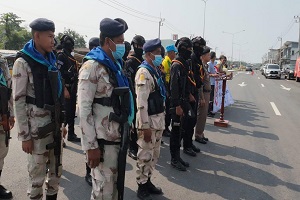 เมื่อวันที่ 11 เมษายน 2566 เวลา 09.00 น. ที่จุดตรวจหน้าโรงพยาบาลศรีสาคร หมู่ 2 ตำบลซากอ อำเภอศรีสาคร จังหวัดนราธิวาส หน่วยเฉพาะกิจกรมทหารพรานที่ 49 จัดกำลังพล ร่วมในพิธีเปิดศูนย์ปฏิบัติการป้องกันและลดอุบัติเหตุทางถนนช่วงเทศกาลสงกรานต์โครงการ “ชีวิตวิถีใหม่ ขับขี่อย่างปลอดภัย ไร้อุบัติเหตุ ประจำปี 2566” เพื่อตั้งจุดบริการประชาชน เป็นการป้องกันและลดอุบัติเหตุทางถนนในห้วงวันที่ 11 – 17 เมษายน 2566 โดยมี นายกิตตินันท์ เซ็งกะชรี นายอำเภอศรีสาคร เป็นประธานในพิธีเปิด