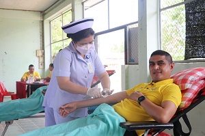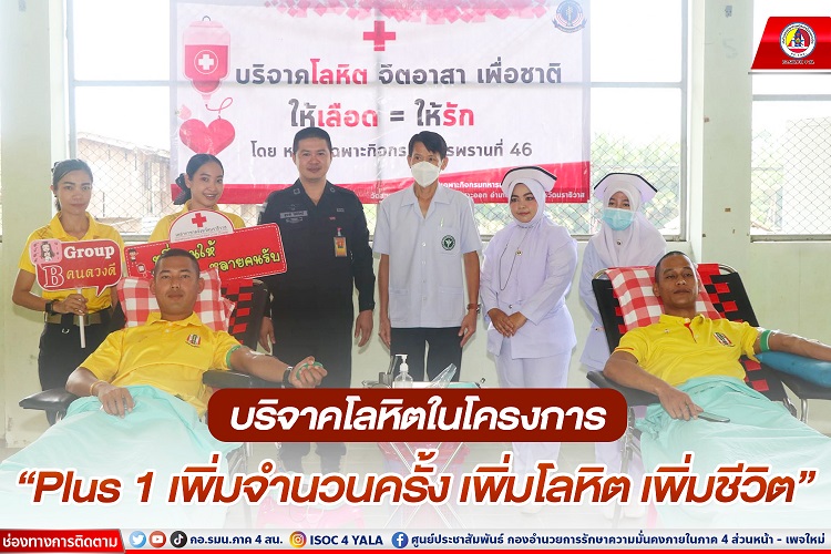 เมื่อวันที่ 11 เมษายน 2566 เวลา 09.00 น. ณ หอประชุมเฟื่องฟ้า โรงเรียนบ้านยะบะ (อุปการวิทยา) ตำบลรือเสาะออก อำเภอรือเสาะ จังหวัดนราธิวาส พันโท ปัตตะพล ประพันธ์ รองผู้บังคับหน่วยเฉพาะกิจกรมทหารพรานที่ 46 พร้อมด้วย ผู้ช่วยนายทหารฝ่ายกิจการพลเรือน กำลังพลของหน่วย และประชาชนในพื้นที่อำเภอรือเสาะ ร่วมกิจกรรมบริจาคโลหิต ภายใต้โครงการ “Plus 1 เพิ่มจำนวนครั้ง เพิ่มโลหิต เพิ่มชีวิต” (Plus One Blood Donation More Blood More Live) ปีที่ 2 ร่วมกับสำนักงานเหล่ากาชาดจังหวัดนราธิวาส และโรงพยาบาลนราธิวาสราชนครินทร์ ประจำปี 2566 โดยมีวัตถุประสงค์เพื่อจัดหาโลหิตให้แก่โรงพยาบาลนราธิวาสราชนครินทร์ ให้มีปริมาณโลหิตเพียงพอในการช่วยเหลือผู้ป่วย ตลอดจนถึงผู้ที่ได้รับผลกระทบ และบาดเจ็บจากเหตุการณ์ความรุนแรง ในพื้นที่ โดยมีกำลังพลและประชาชนในพื้นที่ มาลงทะเบียนร่วมบริจาคโลหิต จำนวน 49 ราย ได้ยอดโลหิต จำนวน 22,050 cc.