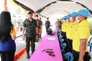 จากนั้น รองแม่ทัพภาคที่ 4 และคณะฯ เดินทางตรวจเยี่ยมและให้กำลังเจ้าหน้าที่ พร้อมมอบเครื่องอุปโภคบริโภคให้กับเจ้าหน้าที่ ประจำจุดตรวจ บริเวณหน้าสถานีตำรวจภูธรยี่งอ อำเภอยี่งอ จังหวัดนราธิวาส ตามโครงการ “ชีวิตวิถีใหม่ ขับขี่อย่างปลอดภัยไร้อุบัติเหตุ ประจำปี 2566” ซึ่งจัดตั้งเพื่อบริการพี่น้องประชาชนเป็นการป้องกันและลดอุบัติเหตุทางถนนในห้วงวันที่ 11 – 17 เมษายน 2566