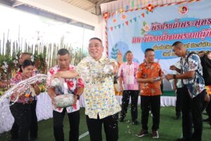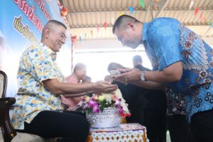 วันนี้ (13 เมษายน 2566) เวลา 10.30 น. ณ แหล่งรวมรถกรมทหารราบที่ 152 ค่ายสิรินธร ตำบลเขาตูม อำเภอยะรัง จังหวัดปัตตานี พลโท ศานติ ศกุนตนาค แม่ทัพภาคที่ 4/ผู้อำนวยการรักษาความมั่นคงภายในภาค 4 เป็นประธานพิธีสรงน้ำพระ รดน้ำขอพรผู้สูงอายุ และผู้บังคับบัญชา สร้างความสัมพันธ์อันดี กับเจ้าหน้าที่และกำลังพล ที่ได้ปฏิบัติงานร่วมกันเหน็ดเหนื่อยมาตลอดทั้งปี ได้คงความสุข สนุกสนาน และรื่นเริงตามประเพณี โดยมี คณะผู้บังคับบัญชาจากกองอำนวยการรักษาความมั่นคงภายในภาค 4 ส่วนหน้า , คณะผู้บังคับบัญชาหน่วยเฉพาะกิจจังหวัดทั้ง 4 จังหวัดชายแดนภาคใต้ (จังหวัดยะลา,จังหวัดปัตตานี,จังหวัดยะลา และจังหวัดสงขลา) , คณะผู้บังคับบัญชาหน่วยขึ้นตรงกองอำนวยการรักษาความมั่นคงภายในภาค 4 ส่วนหน้า ตลอดจนกำลังพลสวมใส่เสื้อลายดอกร่วมพิธี