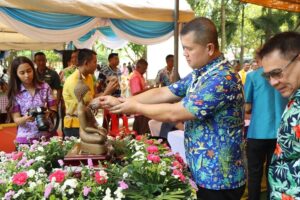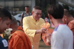 ขณะที่ พลตรี ไพศาล หนูสังข์ รองแม่ทัพภาคที่ 4 / รองผู้อำนวยการรักษาความมั่นคงภายในภาค 4 ส่วนหน้า ร่วมงานประเพณีสงกรานต์ ประจำปี 2566 ทำบุญตักบาตร จุดธูปเทียน บูชาพระรัตนตรัย ร่วมพิธีสรงน้ำพระพุทธรูป ตามขนบธรรมเนียมประเพณี และวัฒนธรรมวิถีไทย ณ วัดประชาภิรมย์ ตำบลบางนาค อำเภอเมือง จังหวัดนราธิวาส โดยมี นายสนั่น พงศ์อักษร ผู้ว่าราชการจังหวัดนราธิวาส ประธานในพิธี , ผู้บังคับหน่วยเฉพาะกิจนราธิวาส หัวหน้าส่วนราชการ , พุทธศาสนิกชนจังหวัดนราธิวาส เข้าร่วมกิจกรรม โอกาสนี้ รองแม่ทัพภาคที่ 4 /รองผู้อำนวยการรักษาความมั่นคงภายในภาค 4 ส่วนหน้า ได้พบปะกับพี่น้องประชาชนว่าประเพณีสงกรานต์เป็นวันสำคัญของพี่น้องชาวไทยพุทธ ซึ่งแม่ทัพภาคที่ 4 ได้ให้ความสำคัญกับทุกเทศกาลและส่งเสริมให้จังหวัดชายแดนภาคใต้ได้สืบสานรักษาวัฒนธรรมไทยให้อยู่คู่กับพี่น้องประชาชนตลอดไป