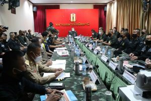 จากนั้นเวลา 1300 คณะเดินทางต่อไปยังหน่วยเฉพาะกิจสงขลา ต.ท่าม่วง อ.เทพา จ.สงขลา รับฟังบรรยายสรุปการติดตามความคืบหน้าการปฏิบัติที่สำคัญในห้วงที่ผ่านมา รวมถึงปัญหาข้อขัดข้อง พร้อมทั้งรับฟังการชี้แจงจากกองอำนวยการรักษาความมั่นคงภายในจังหวัดสงขลา เรื่องปฏิบัติภารกิจของกำลังภาคประชาชนแต่ละประเภท ได้แก่ อาสาสมัครรักษาดินแดน, ชุดคุ้มครองตำบล, อาสาสมัครรักษาหมู่บ้าน, ชุดรักษาความปลอดภัยหมู่บ้าน และไทยอาสาป้องกันชาติ รวมถึงการบรรยายสรุปการติดตามความคืบหน้าคดีปัจจุบันของกองกำลังตำรวจจังหวัดสงขลา